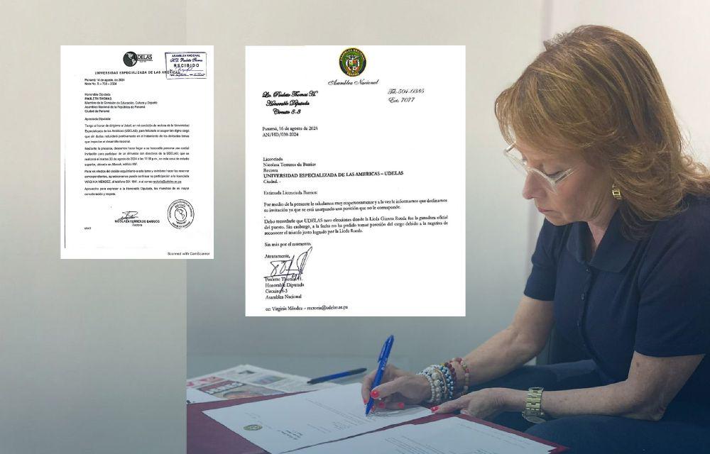 Previamente, Nicolasa Terreros Barrios había enviado invitación formal a Paulette Thomas (con fecha 14 de agosto de 2024) “para participar de un almuerzo con directivos de la Udelas; que se realizará el martes 20 de agosto de 2024 a las 12:30 p.m., en esta casa de estudio superior, ubicada en Albrook, edificio 807”.