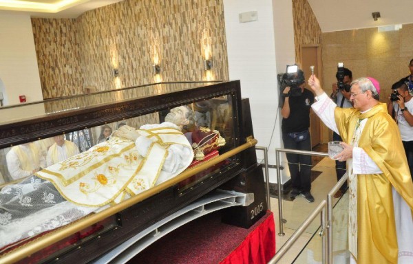 Miguel Giorgio, párroco de este templo católico, expresó que cinco urnas con una réplica fiel de Don Bosco fueron distribuidas en los cinco continente s y una de ellas, que contiene su antebrazo derecho, se quedó en Panamá.