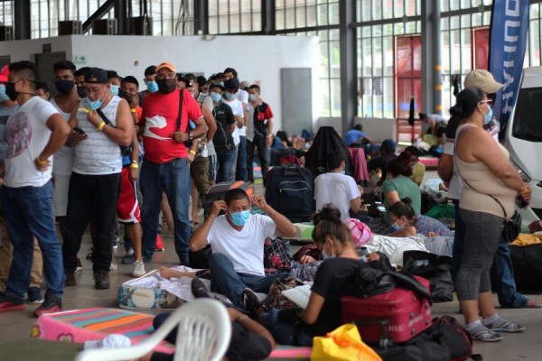 Un total de 1.180 nicaragüenses que se quedaron sin medios de vida en Panamá por la crisis provocada por la COVID-19 llegaron el miércoles a la principal estación de autobuses de la capital para regresar a Nicaragua en una caravana, pero no pudieron salir.