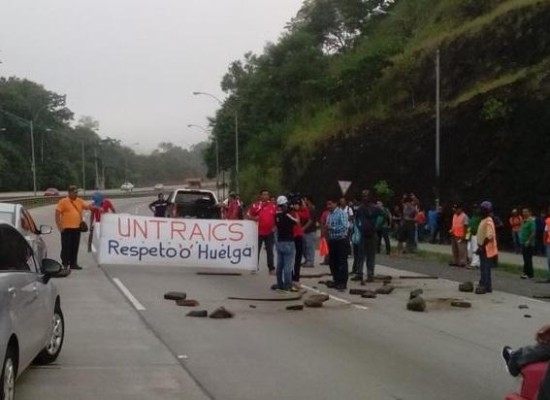 Los trabajadores bloquearon este miércoles la carretera de acceso al puente Centenario, sobre la vía interoceánica, para exigir a las autoridades del Ministerio de Trabajo hacer cumplir sus demandas.